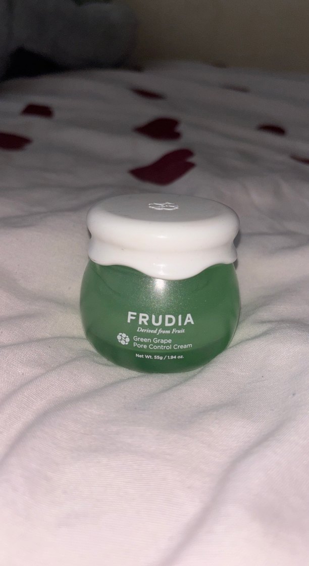 Frudia Green Grape gözenek kontrol kremi, E vitamini içerir ve gözeneklerin görünümünü kontrol etmeye yardımcı olur. 55 g kavanozda sunulur.