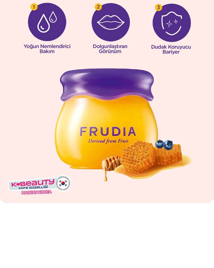 Frudia'nın sarı renkli paketinde yer alan Blueberry Hydrating Honey Dudak Balmı, dudakları nemlendirir ve yatıştırır. fiyat tek adet icin gecerlidir