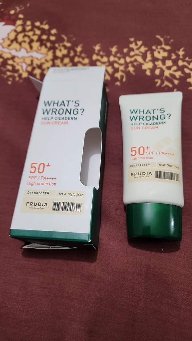 Frudia What's Wrong? Help Cicaderm güneş kremi, SPF 50+ ve PA+++ ile yüksek koruma sağlar, hassas cildi güneşin zararlarından korur ve rahatlatır. ☀️