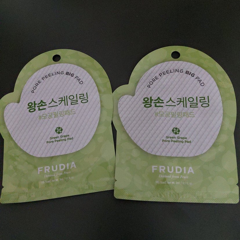 Frudia Yeşil Üzüm Gözenek Peeling Pedleri, cildi nazikçe eksfoliye eder ve gözenekleri temizler.