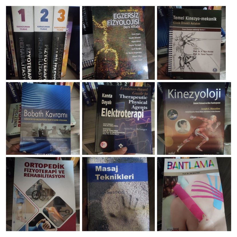 *Üçlü set 3000 ₺ *Egzersiz fizyolojisi 100 ₺ *Temel Kinezyomekanik 150 ₺ *Bobath Kavramı 500 ₺ *Elektroterapi 250 ₺ *Kinezyoloji 400 ₺ *Masaj Teknikleri 200 ₺ *Bantlama 900 ₺ ayrı ayrı sorun