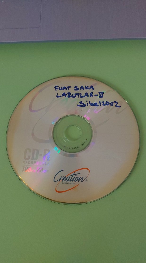 Üzerinde 'Fuat Saka Lazutlar-II yazılı, 700 MB kapasiteli Creation Optical Media CD-R diski.
