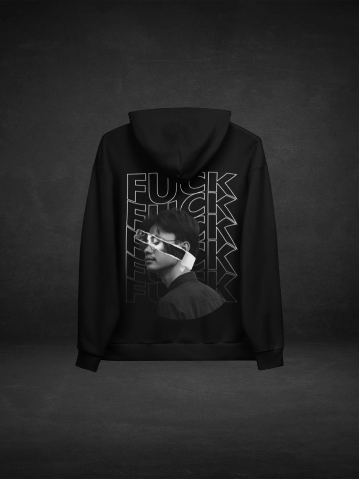 Fuck Off | Siyah Kapüşonlu Baskılı Sweatshirt
