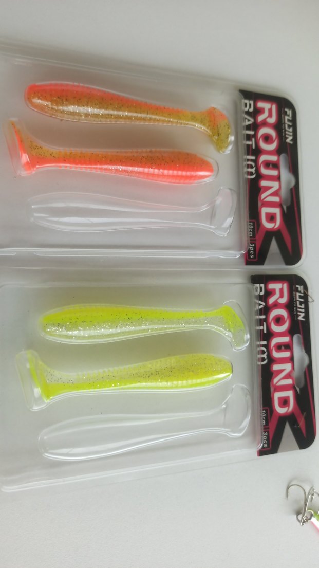 kaliteli iyi marka fujin round bait 10 cm limon ve turuncu silikon yem avcı yemler iki kutuda 2 şer tane var yani 4 tanesi 500 tl. Fujin round bait avcı renkler Silikon Yemi 10 cm 4 tane olta yemi