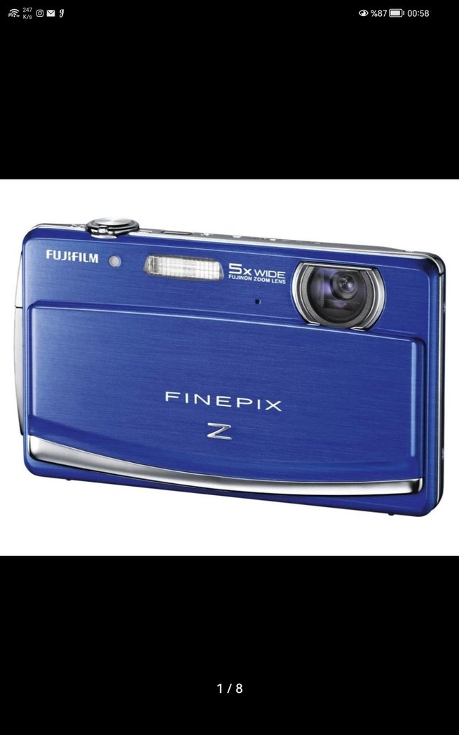 Fujifilm FinePix Z, parlak mavi renkte, 5x geniş zoom lensli kompakt dijital kameradır. Kullanımı kolay ve taşınabilir. yanında orjinal pili kamera çantası kutusu ve orjinal şarj aleti ile yollanacaktır. Fujifilm FinePix Z90. kamera tipi: Kompakt Fotoğraf Makinesi. Megapiksel: 14,2 MP. Resim sensörü: 1/2.3 " boyutu. Sensör tipi: CCD (Charge-transfer-cihaz) Maksimum çözünürlük: 4320 X 3240 piksel. optik zoom: 5 x. Dijital Zoom: 6,8 x. Odak uzaklığı: 5 – 25 mm. Tip HD: HD. "maksimum video çözünürlüğü: 1280 x 720 piksel.