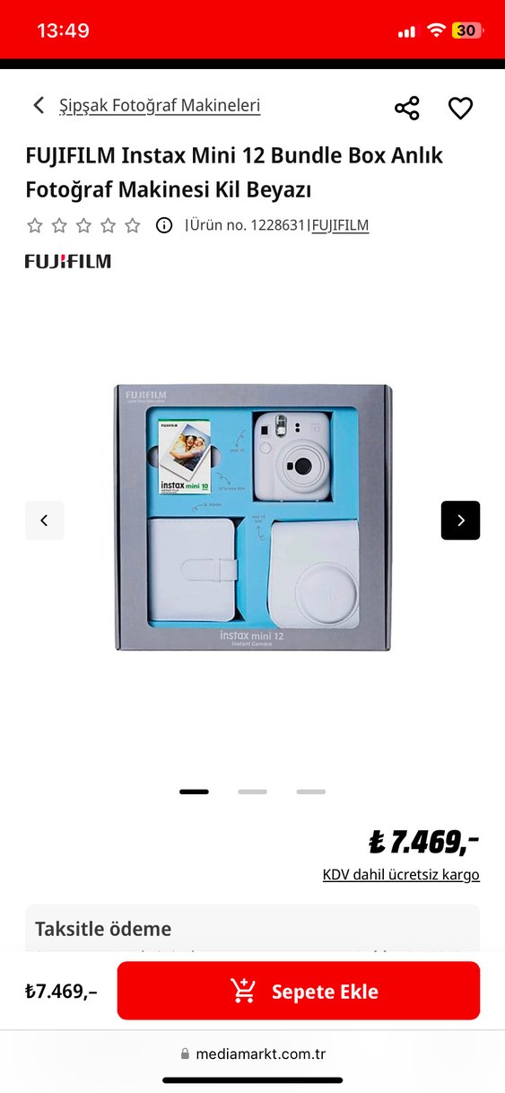 FUJIFILM Instax Mini 12 Filmli Fotoğraf Makinesi Beyaz