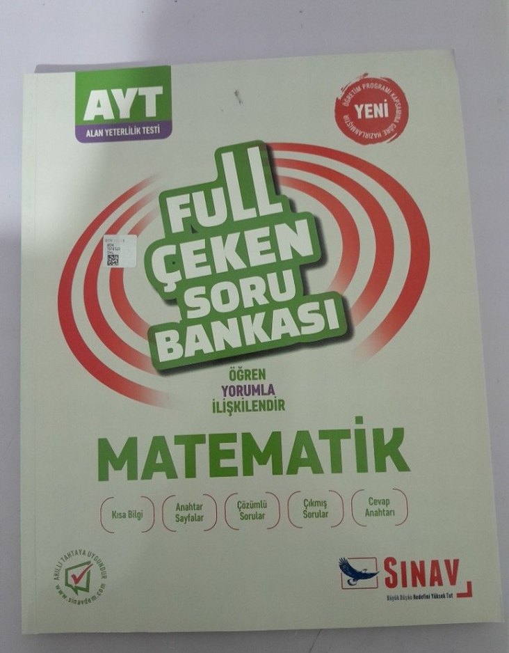 AYT Full Çeken Matematik soru bankası, kısa bilgi, anahtar sayfalar, çözümlü ve çoktan seçmeli sorular ile cevap anahtarı içerir.