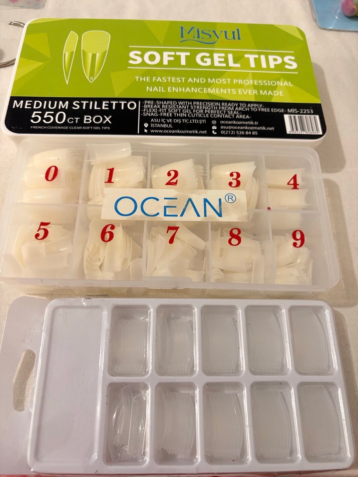 Misyul markasına ait, orta boy stiletto şekilli 550 adet beyaz soft jel tırnak ucu, profesyonel tırnak uzatma için uygundur. Full jel olan da 500 adet vardır 2-3 defa kullanıldı çünkü yarım ay tips için adet tahmini veremiyorum ama oda 2-3 defa kullanıldı polly jel için olanı hiç kullanmadım beceremedim çünkü tekrar kullanıma uygunlar