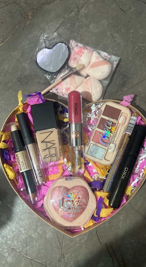 Set içeriği Ronassı kontur ve hıglıght Nars kapatıcı Nars fondoten Rose allık Kiko glosss 4lü far paleti Rose eyeliner (mükemmel pigment) Kiko mascara Kalp ayna,fırça,4lü makyaj süngeri hediyedir