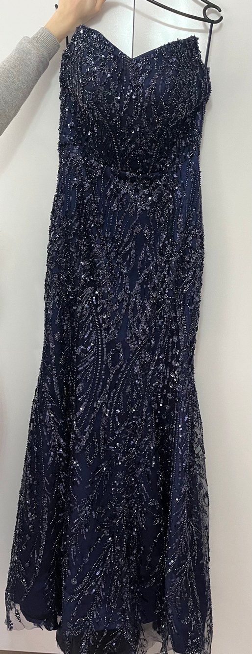 Lacivert, payet işlemeli, uzun ve dar kesim kadın abiye elbise. Kayık yaka ve kolsuz tasarımıyla şık ve modern bir görünüm sunar. ✨ Özel dikimdir 36 beden arkası ipli olduğu için 36-38 bedenede çok rahat bir şekilde olur eldivenleride yanında göndereceğim eldivenleride full taş işleme mükemmel bir balık model fiziği resmen öne çıkartıyor hiç bir sorunu deformesi yoktur