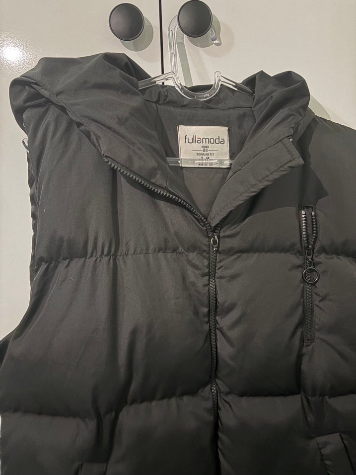 Fullamoda markalı, fermuarlı ve yakalı siyah, kolu olmayan, yumuşak ve sıcak kumaştan yapılmış, gündelik kullanıma uygun, dar kesim yelek.