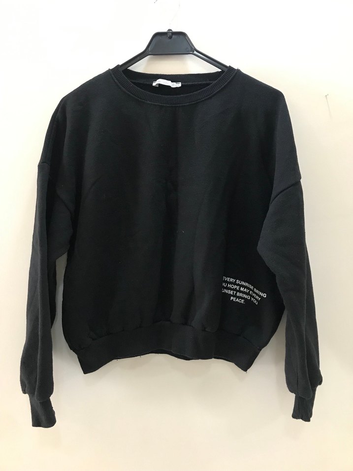 Siyah renkli, uzun kollu ve yuvarlak yakalı kadın sweatshirtü. Yumuşak kumaştan, rahat ve bol kesim. Önünde baskılı detay bulunur, günlük kullanıma uygundur.