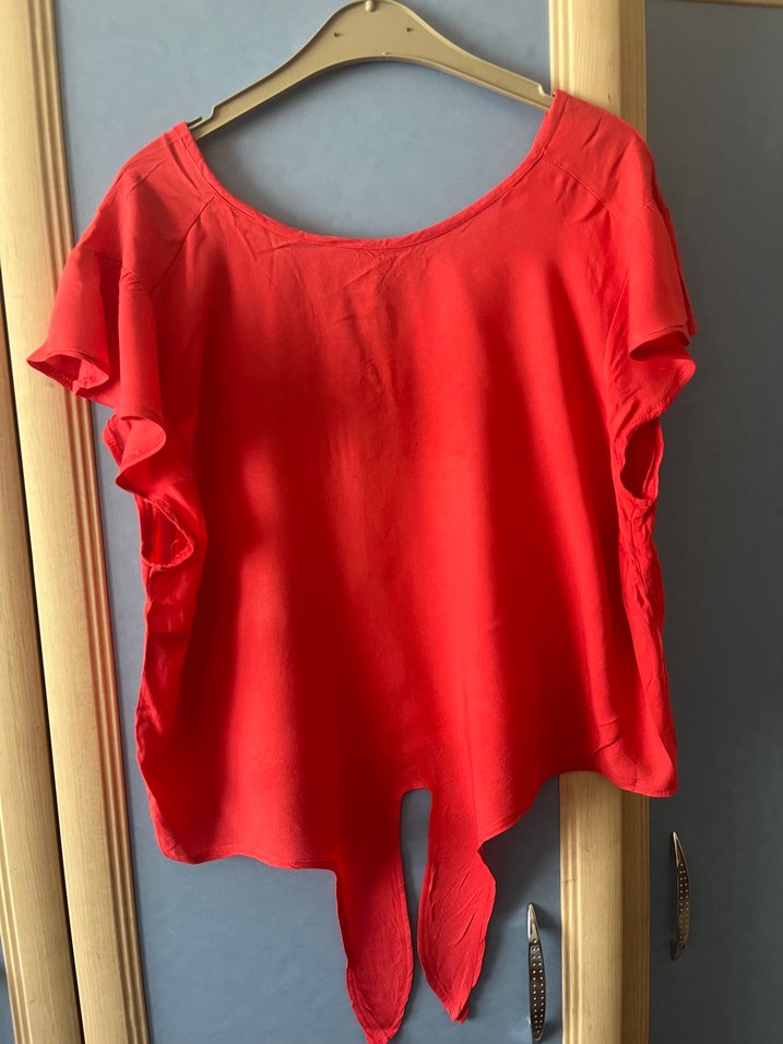 Fulya renkli, yuvarlak yaka ve kısa kollu bluz. Salaş kesim, drapeli ve parlak dokusuyla günlük kullanıma uygundur. Arkadında düğme detay ve ve modelli kol kesimi ile çok şık