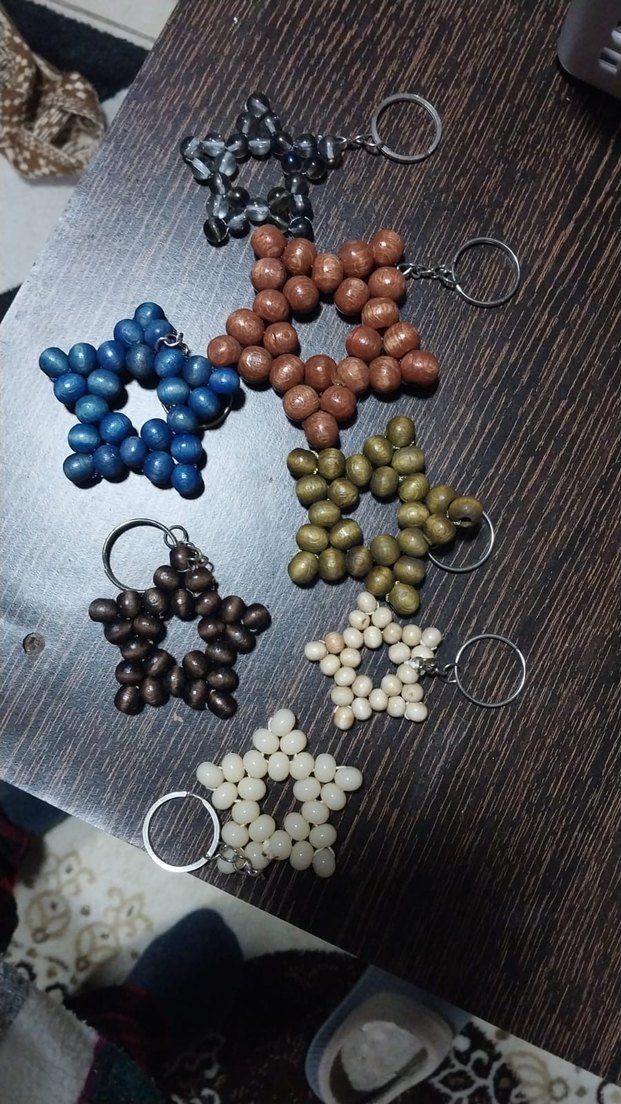 Çok renkli, boncuklu yıldız şeklinde anahtarlıklar. Bohem tarzda, sade ve minimalist tasarıma sahip, metal halka ile tamamlanmıştır.✨