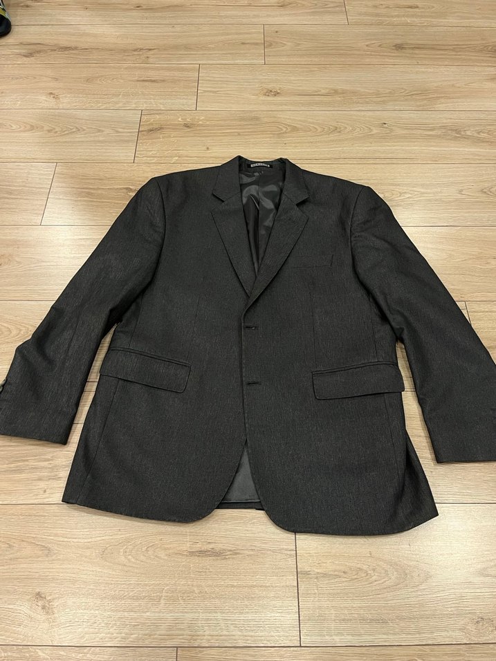 Füme renkte, notched lapel yakalı ve düğmeli erkek takım ceketi. Regular fit, uzun kollu, iş ortamına uygun sade tasarım.