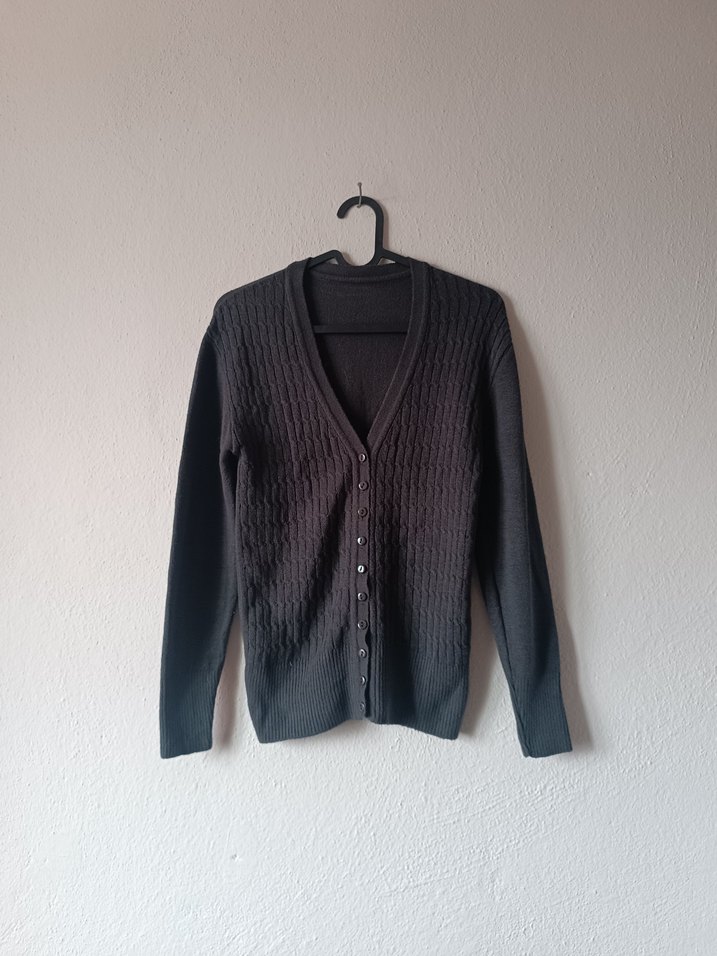 Füme renkli, V yakalı, uzun kollu ve triko dokumalı bu hırka, rahat ve gotik tarzda günlük kullanım için uygundur. Yumuşak kaliteli bir kumaşı vardır. İki koltuk arası genişliği 40 cm, boyu 59 cm dir. Yüzde 100 akrilik. Bu sayfadaki ürünler, ek gelir amaçlı satışta değildir. İkinciel butik satış fiyatlarıdır ve bu sebeple fiyat sondur. Sadece toplu alımlarda indirimden faydalanabilirsiniz. (üç ürün yüzde 5, beş ürün yüzde 15) Aynı gün kargoya verilir. Instagram: @namaste.vintage