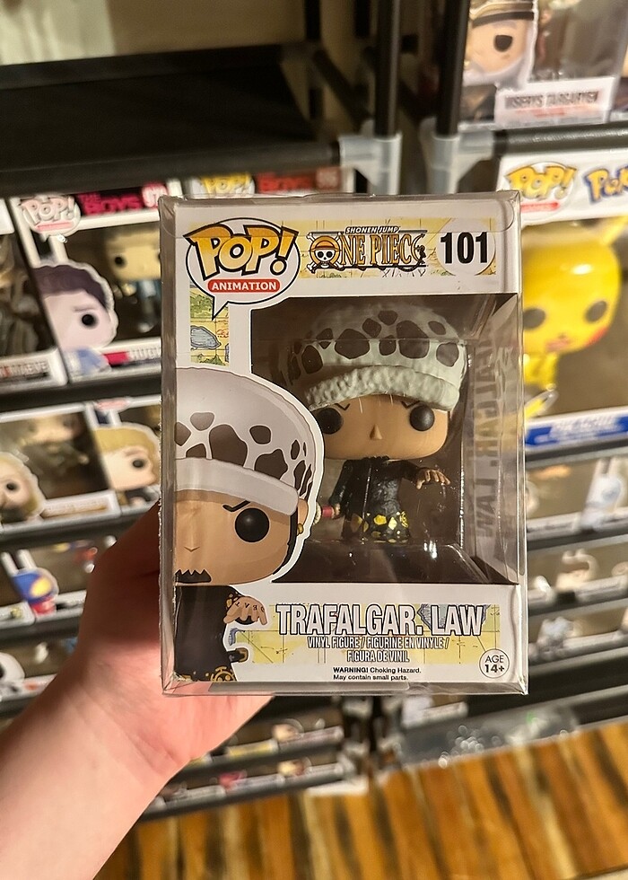 Funko Pop Trafalgar Law One Piece Figürü. Kutusunda yıpranmalar mevcuttur, fotoğraflarını koydum. Figürün kafasındada çok küçük ve az belli olan çizikler mevcut. Bu durumda kutusu olanlar yurtdışında 260 dolar civarlarına satılmakta. Artık ülkeye bu figürü sokmakta imkansız veya çok maliyetli halde. Tekliflere açığım.