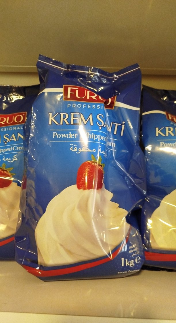 Parlak beyaz renkte, 1kg paket FURU köpük kreması tozu, köpük krema yapmak için uygundur.