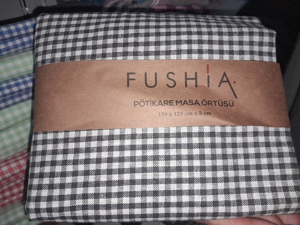 Fushia masa örtüsü, 170x170 cm ölçülerindedir