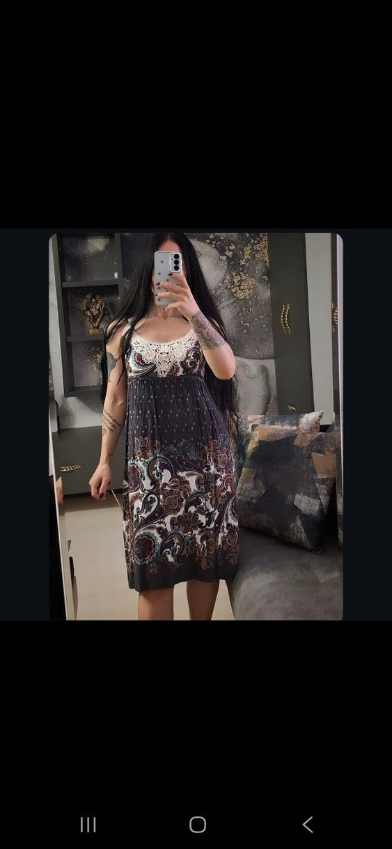 #Fusion füme renkte üzerine şal desenli,yaka kısmı güpürlü,arka sırt kısmı lastikli,içi astarlı,askıları ayarlanabilir,kumaşı çok kaliteli ve yumuşacık #elbise Tertemiz sorunsuz üründür.