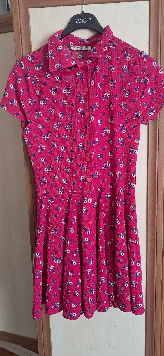 kısa kollu cicek desen, uzunlugu 80 cm eteği volanlı elbise