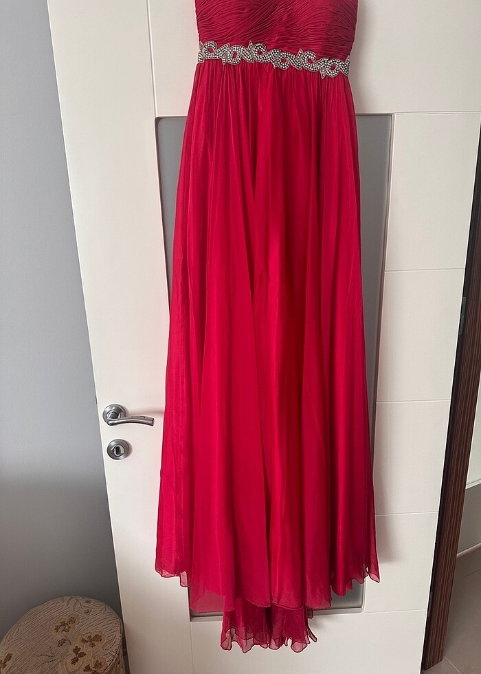 Sadece nişanımda bir defa giydiğim ünlü bir terzinin özene bezene yaptığı drapeleriyle özel bir abiyedir. 34 bedendir. taşları yurtdışından getirilmiştir. Kuyruk kısmı ekstra uzun olup boyum 168 cm ayağımda 8 cm topukluyla kuyruk kısmı yerde salınıyordu. Straplez düşmemesi için içinde ekstra korse kullanıldı.