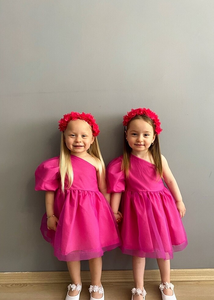 Fuşya elbise 2 kez giyildi temizdir 3-4 yaş taçla beraber