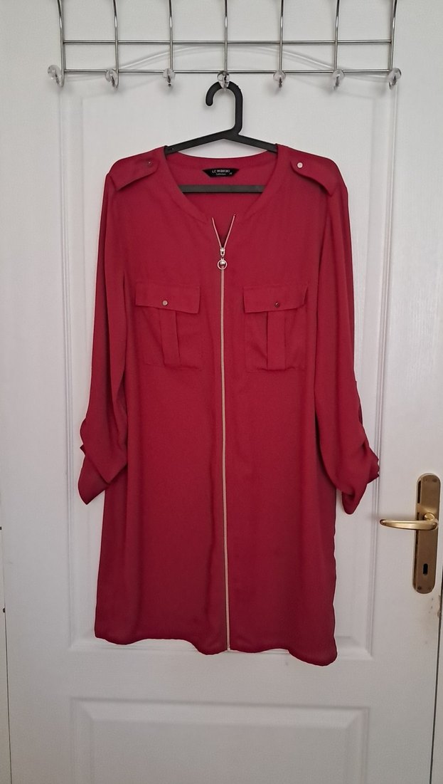 fuşya renk sentetik kumaştan, rahat kesim ve uzun kollu kadın tunik. fermuarlı, günlük kullanım için uygundur.