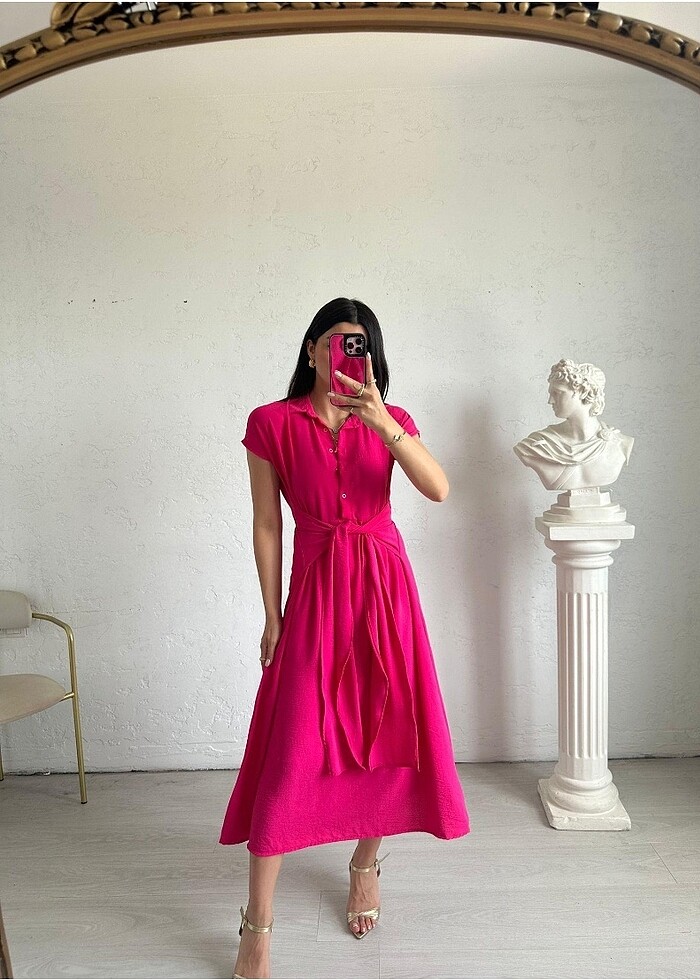 Hiç giyilmemiştir etiketli ürün #uzunelbise #fuşyaelbise #gömlekelbise