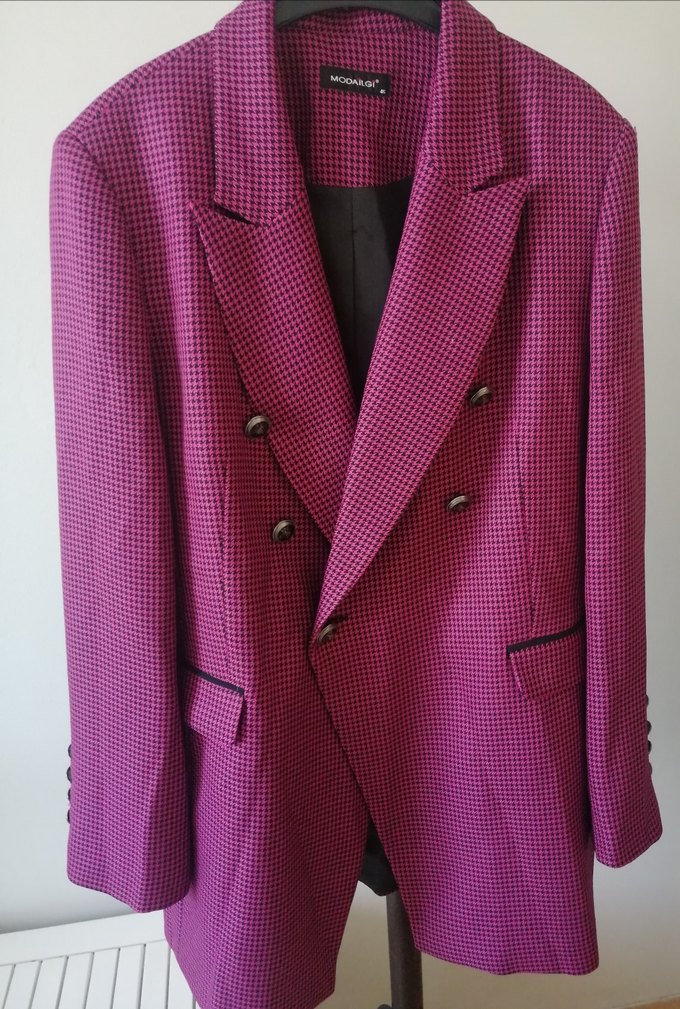 Fuşya renkte, düğmeli ve uzun kesim kadın blazer. Notlu yakalı, uzun kollu ve klasik şıklıkta, ofis için uygun. #modailgi #fuşya #tesettür #ceket #blazerceket #lcw #blazer #adilışık #adL