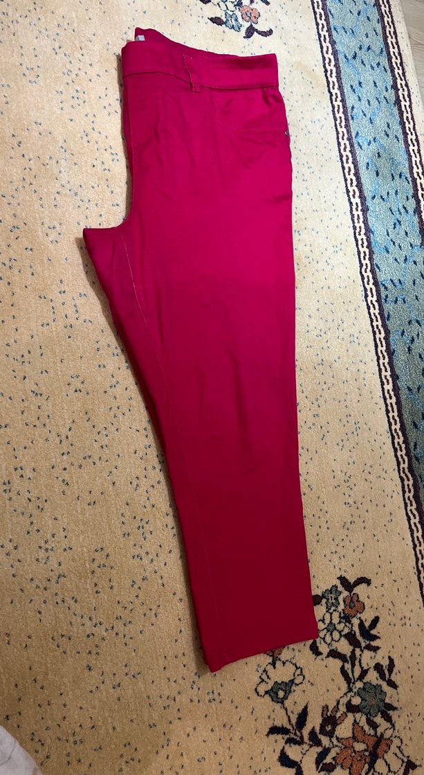 Bordo renkli, kadınlar için uzun ve regular fit kumaş pantolon. Düz ve parlak sentetik kumaştan, fermuarlı detaylara sahip, günlük kullanıma uygun.