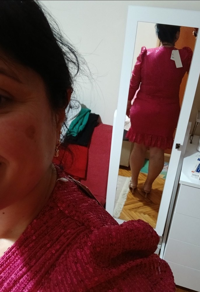 fuşya Mini payetli Elbise