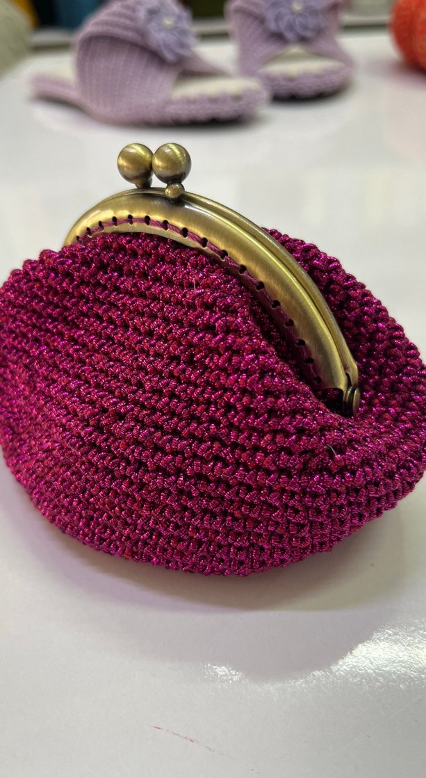 Fuşya renkli, örgü dokulu ve vintage tokalı kadın portföy cüzdan. Renkli ve nakışlı deseniyle günlük kullanıma uygundur.
