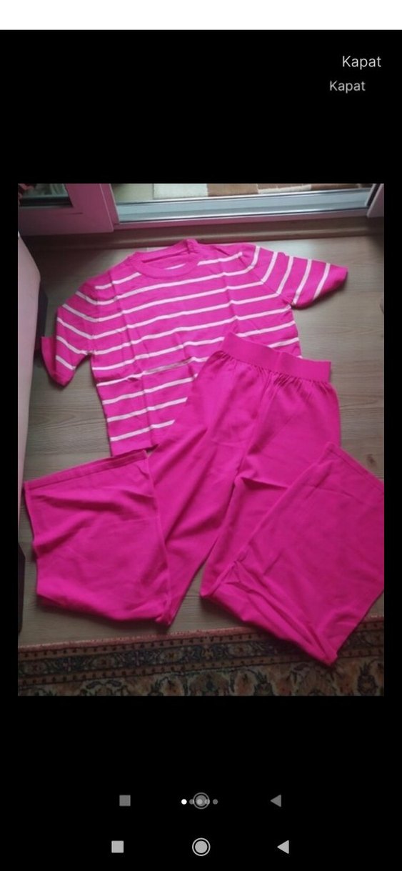 ASAGİSİ KURTARMAZ..kargoua git gel dolmuş ve hizmet bedeli 250 TL tutmakta. sifir urun...fusya triko takim..S,M ,L uyumlu..esnek urun....Rahat kesim, kısa kollu çizgili üst ve canlı pembe midi boy düz pantolondan oluşan kadın pijama takımı. iade almıyorum bilerek alim yapınız detay sorunuz..