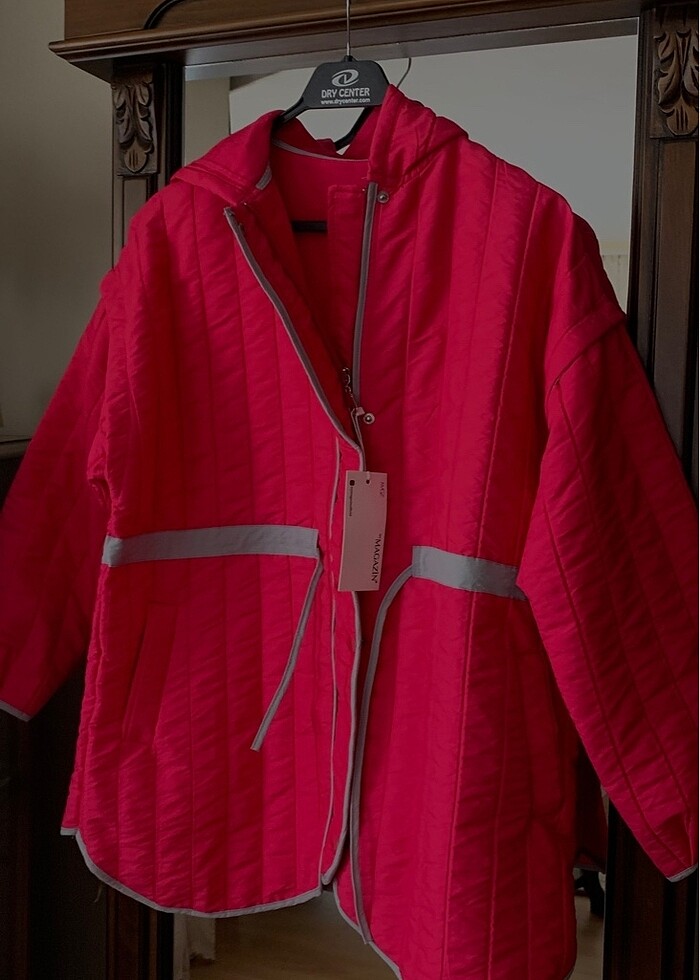 fuşya pembe kapitone mont ceket kapüşonlu M