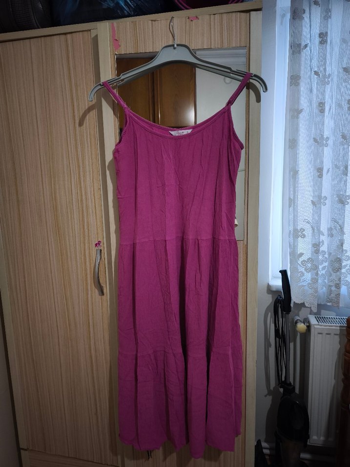 Fuşya Pembe Midi Askılı Rahat Kadın Elbise
