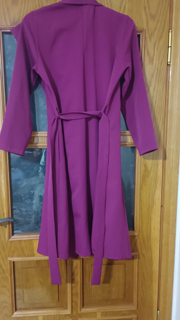 Uzun kollu, fuşya pembe renkte, sade ve desen içermeyen kadın trenc. Belden bağlamalı ve normal kesimdir. Minimalist tarzı yansıtır.