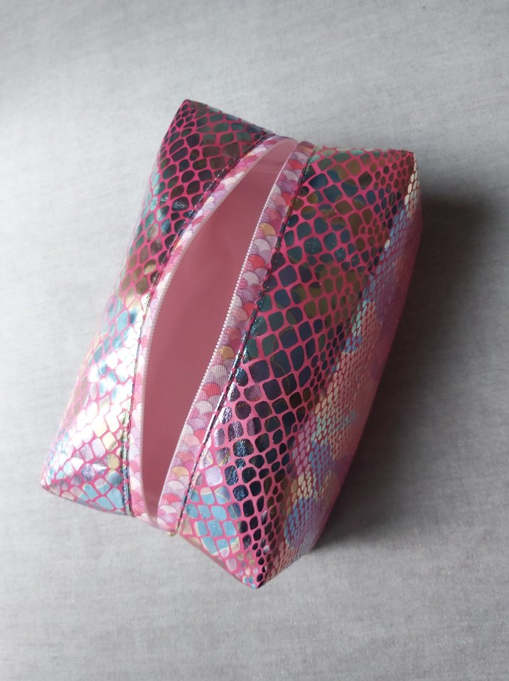 Fuya Renk Holografik Yılan Desenli Kadın Makyaj Çantası-Premium
