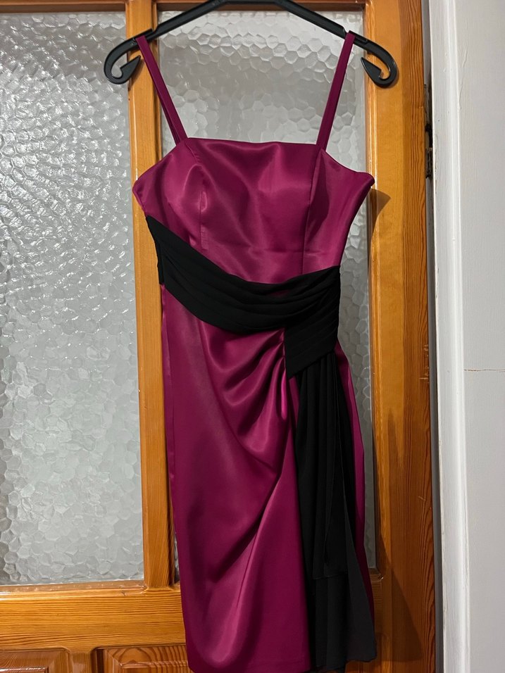Fuşya renk mini abiye, göğüs kısmında bir leke var ama çıkacak şekilde.