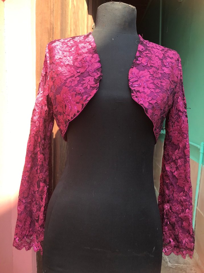 Fuşya Simli Güpür Uzun Kollu Kollu Bolero-M beden