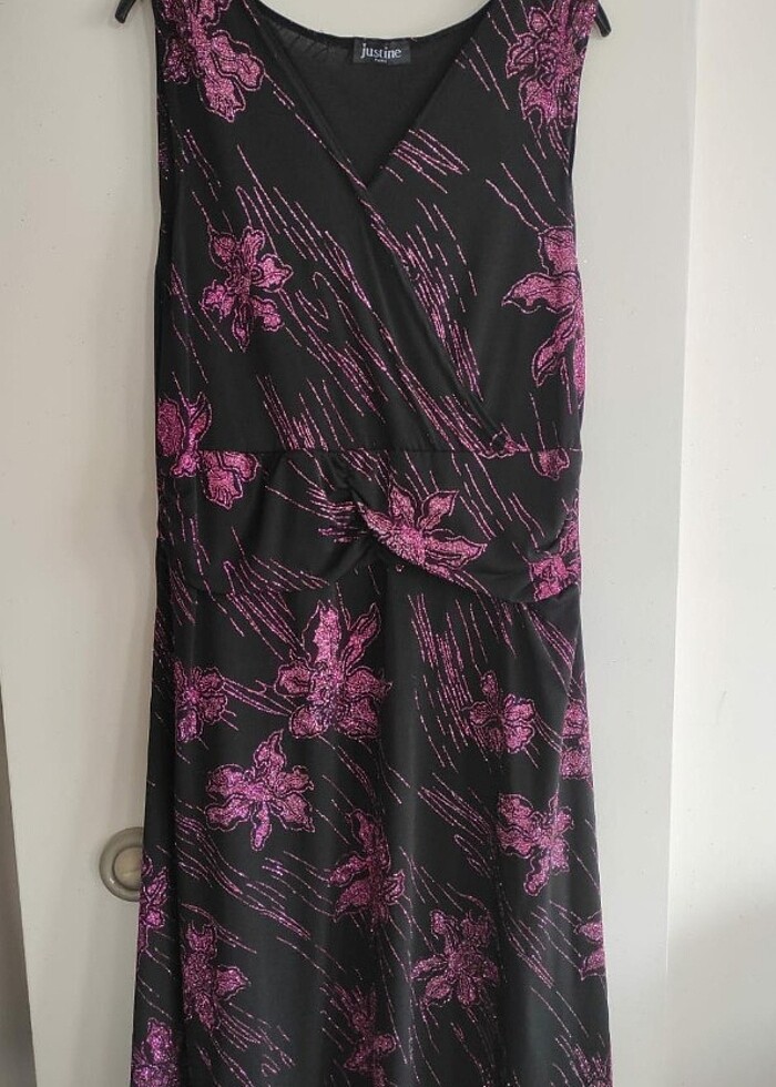 Fuşya Simli Midi Boy Abiye Elbise