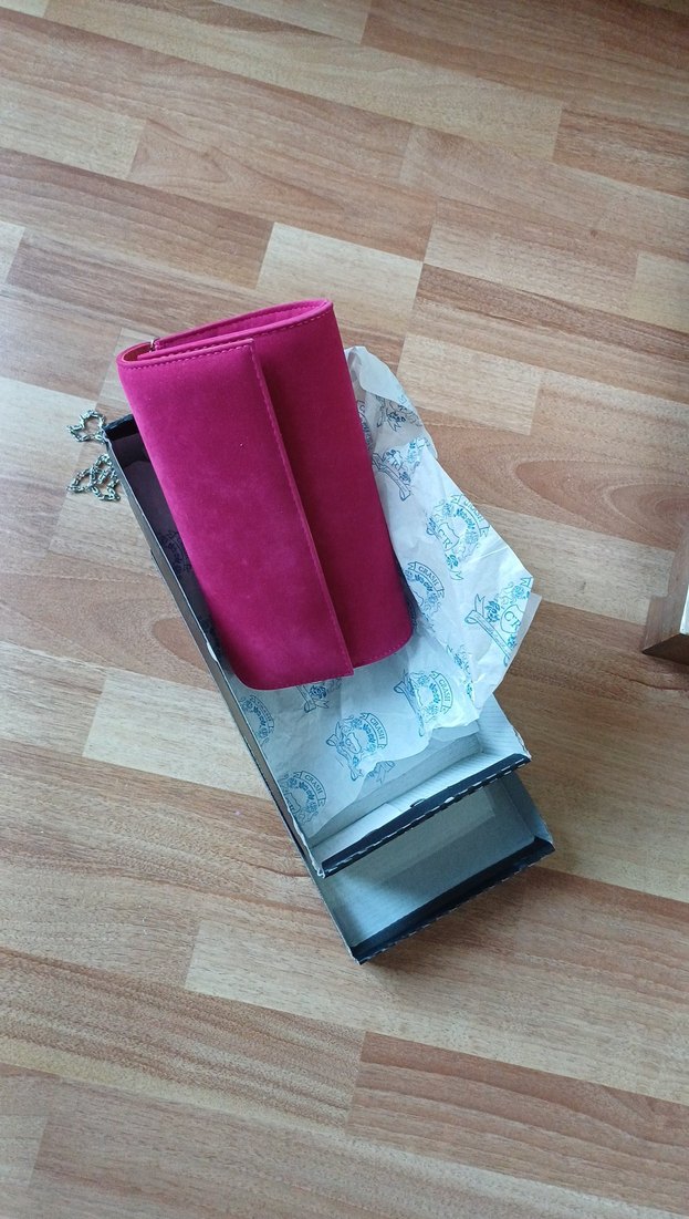 Fuşya süet malzemeden yapılmış, zincir detaylı kadınçanta. Minimalist ve çağdaş tasarımıyla günlük kullanıma uygundur.