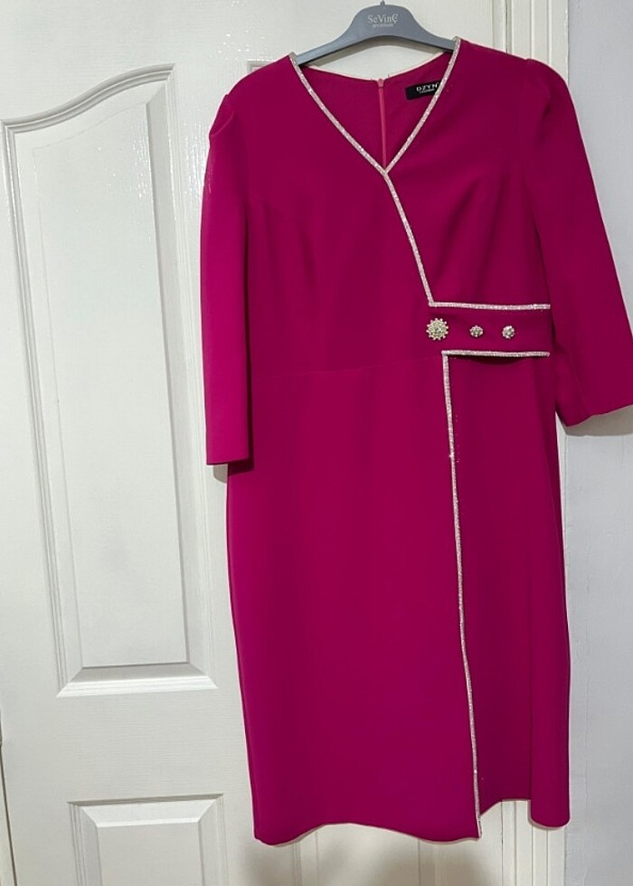 Fuşya Taşlı Detaylı Abiye