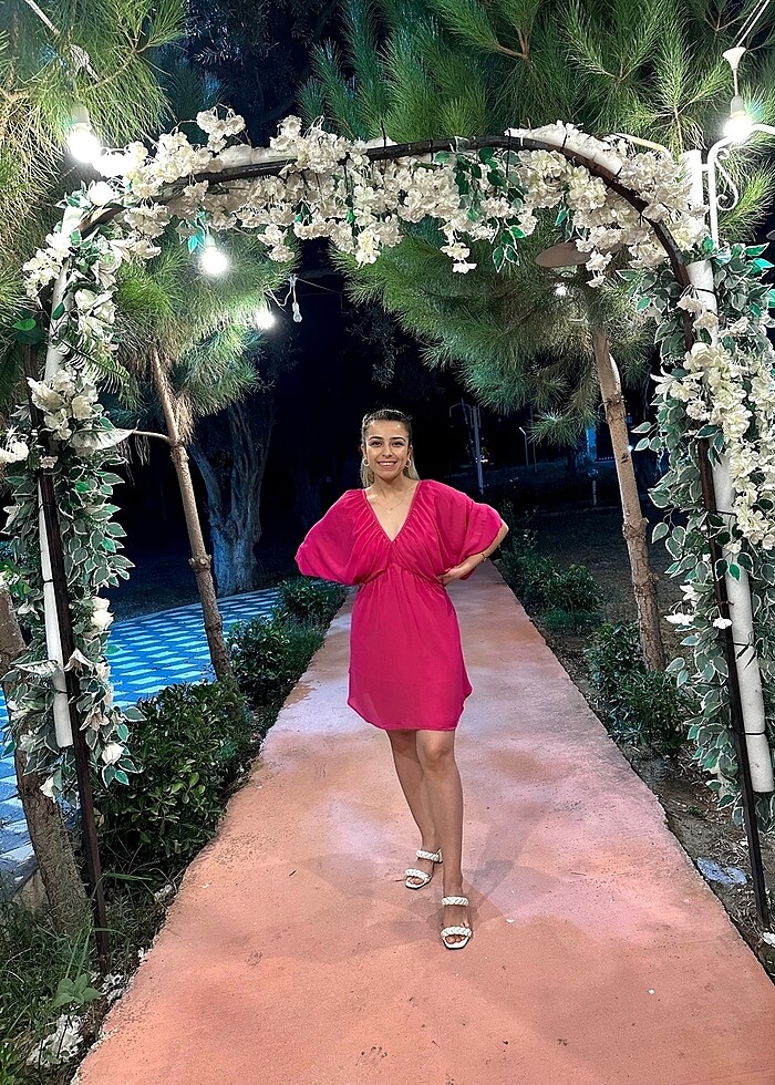 Fuşya yarasa kol elbise