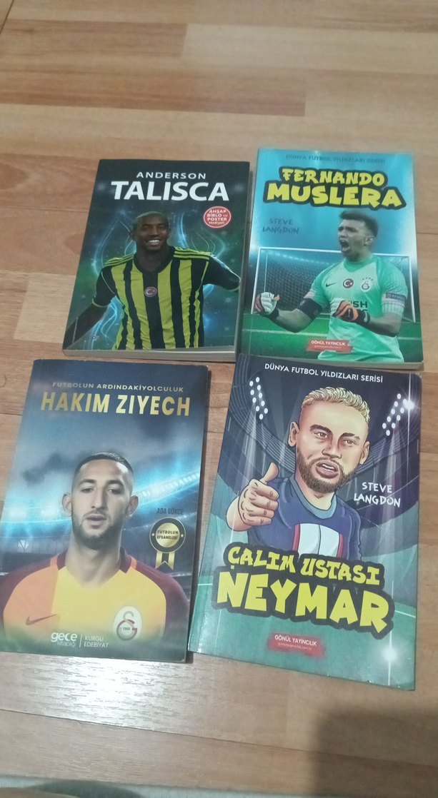Anderson Talisca, Fernando Muslera, Hakim Ziyech ve Neymar'ı konu alan dört futbolcu biyografisi kitabı seti. Futbol kariyerleri ve başarıları anlatılıyor. ⚽