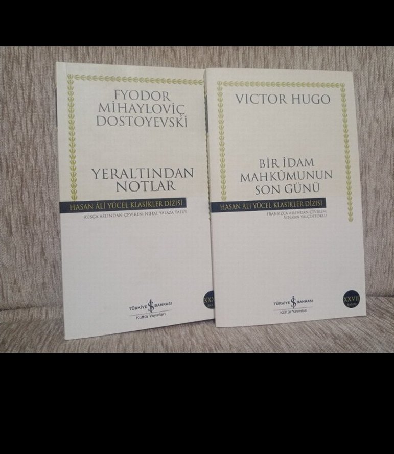 Fyodor Dostoyevski ve Victor Hugo'nun Hasan Ali Yücel çevirisiyle klasik romanları; Yeraltından Notlar ve Bir İdam Mahkumunun Son Günü.