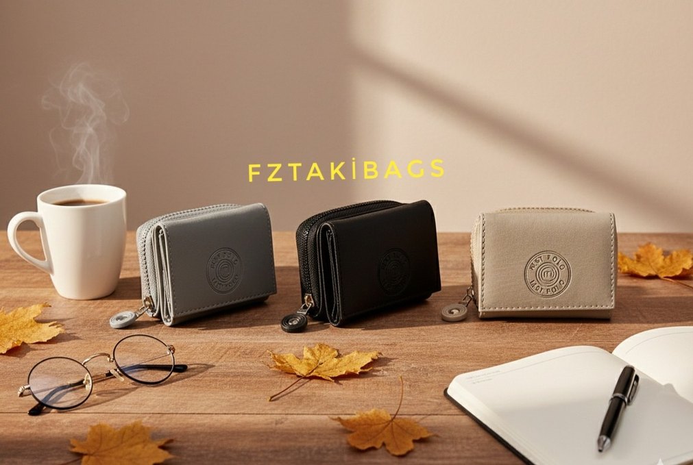 Siyah deri kadın cüzdanı, nakış detaylı ve fermuarlı. Minimalist ve karşı kültür tarzında, günlük kullanım için uygun. Gri ve siyah renk tonlarıyla zamansız bir dokunuş sunar. FZTAKiBAGS markası yer alır.