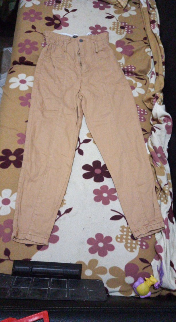 Camel renktedir. Sade,beli büzgülü kemerli, iki bacakta aşağı doğru tek çizgili bohem görünümlü kadın pantolon