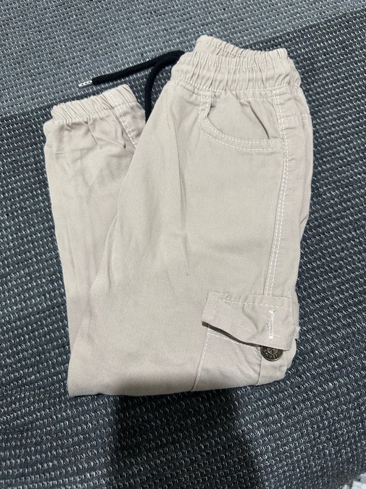 Bej renkte, düğmeli ve lastikli bel detayına sahip pamuklu, hiç bir sorunu yok tertemz bi kaç kez giyildi