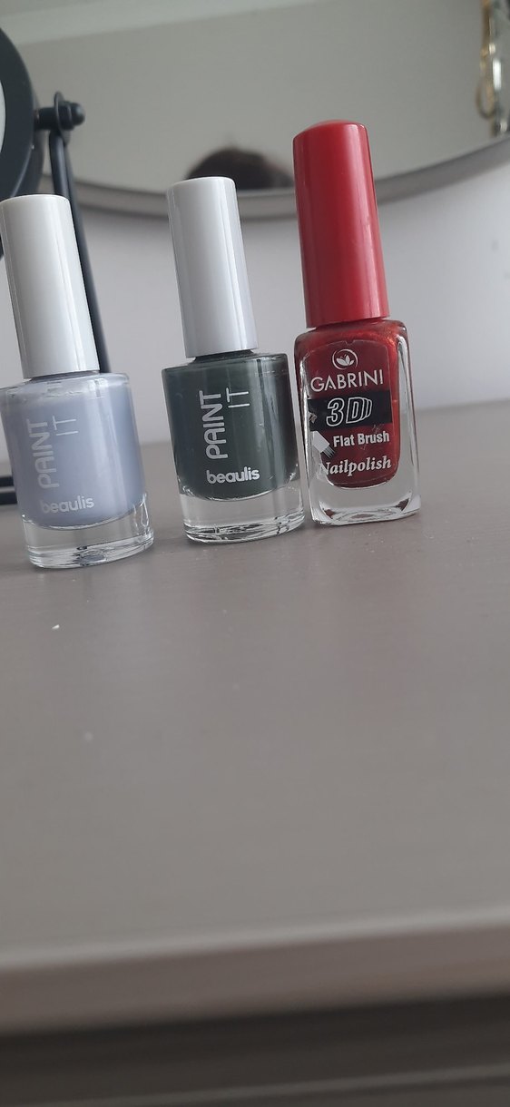 Gabrini 3D kırmızı oje ve iki adet Beaulıs gri oje içeren set, canlı tırnak görünümleri için uygundur.